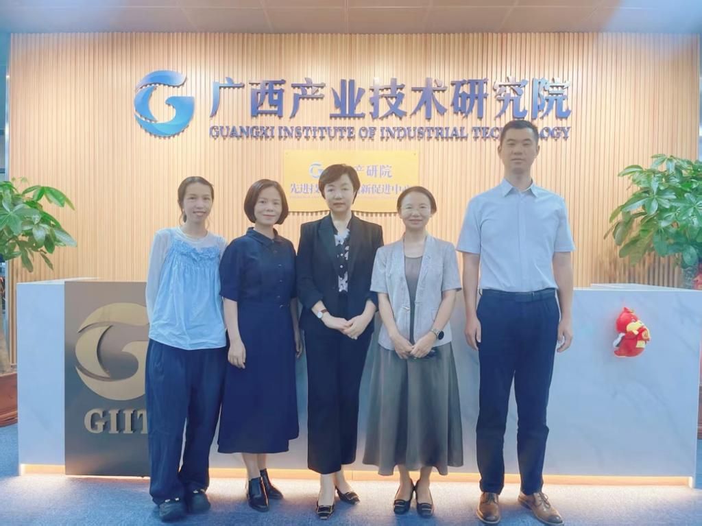 为深入了解行业发展动态,精准对接用人单位需求,进一步推动学院专业建设与人才培养模式的改革创新,2025年10月14日下午,我院院长刘雪芹教授率领MTI教育中心主任张静副教授、法语系副主任吴晓老师一行,赴广西产业技术研究院(以下简称“广西产研院”)开展专题调研活动。