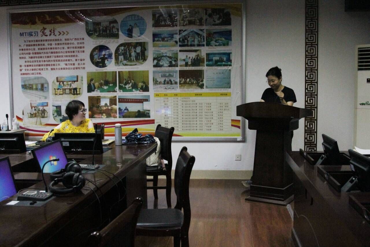 10月14日晚,2025年“外研社•国才杯”“理解当代中国”全国大学生外语能力大赛英语组口译赛项广西民族大学校赛第二轮,在国际教育综合大楼1501室举行。本次比赛旨在检验和提升大学生的外语口译水平,助力学子更好地“理解当代中国”并向世界传递中国声音,吸引了来自外国语学院、化学化工学院等院系的学子参与。