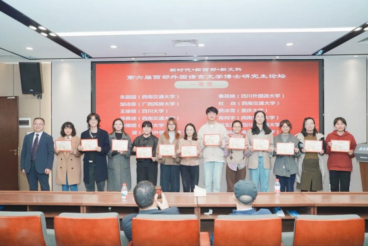 11月1日,由西部高等院校外语教育教学联盟主办、西南交通大学外国语学院承办的“第六届西部外国语言文学博士研究生论坛”在西南交通大学犀浦校区落幕。本届论坛以“跨学科与外国语言文学研究的范式转型与方法创新”为主题,设主旨报告和平行论坛两大板块,共吸引来自西部12个省区市31所高校及科研机构的200余位专家学者、博士研究生参会。我院张跃军教授率博士生团队一行五人赴蓉,与西部高校的同行深入交流。