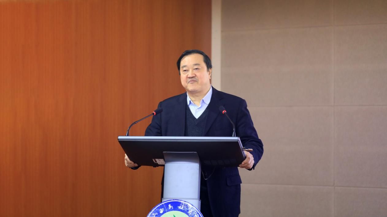 2025年11月19日晚,河北师范大学二级教授、博士生导师李正栓教授应邀做客外国语学院“通天塔学术讲坛”,以“毛泽东《七律·长征》译者群体体认行为研究”为题,为我院师生呈现了一场学术深度与历史洞察并重的讲座。本次讲座由外国语学院院长刘雪芹教授主持,现场座无虚席,学术氛围浓厚。