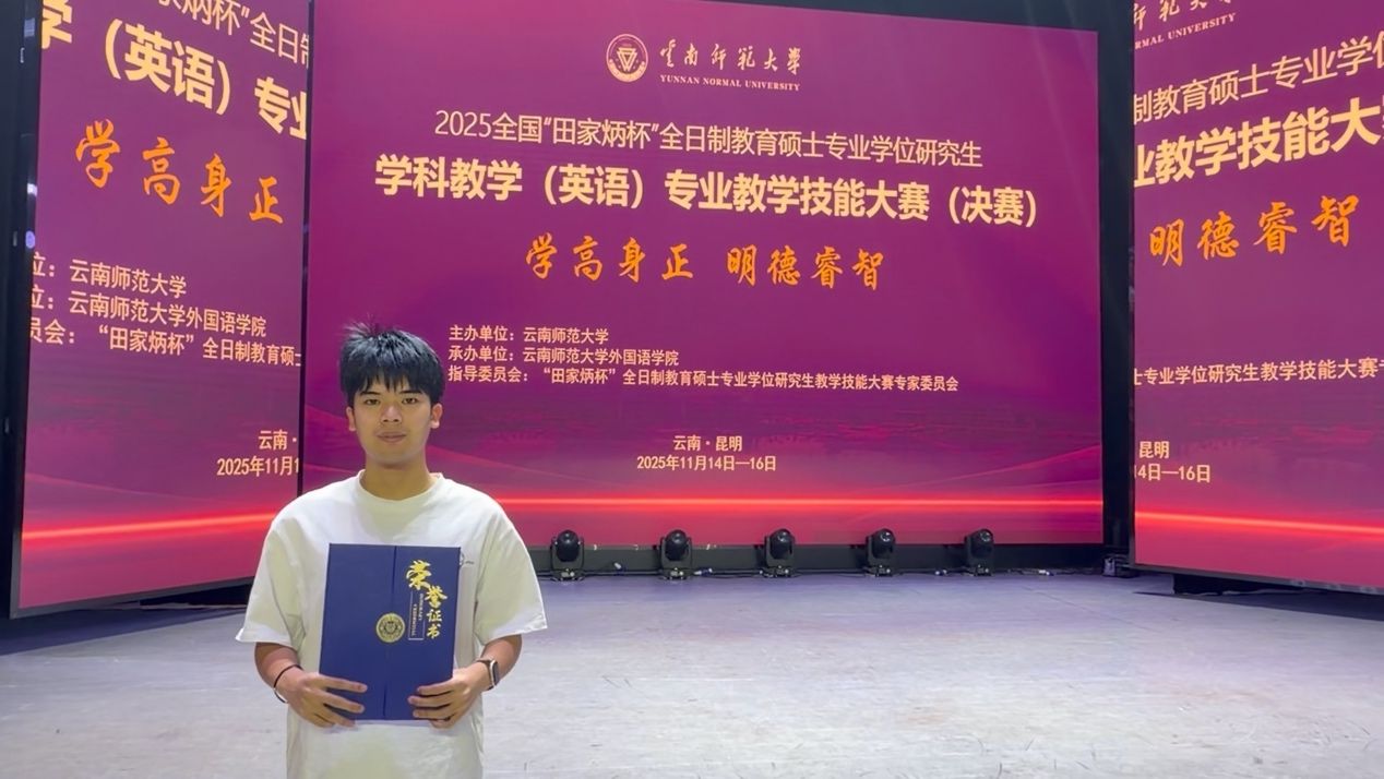 11月16日,2025年全国“田家炳杯”全日制教育硕士专业学位研究生学科教学(英语)专业教学技能大赛(决赛)在云南师范大学闭幕。本届大赛由“田家炳杯”全日制教育硕士专业学位研究生教学技能大赛专家委员会指导,云南师范大学主办,作为国内教育硕士领域极具含金量与影响力的专业赛事,重点考察选手的教学实践能力与综合素养。