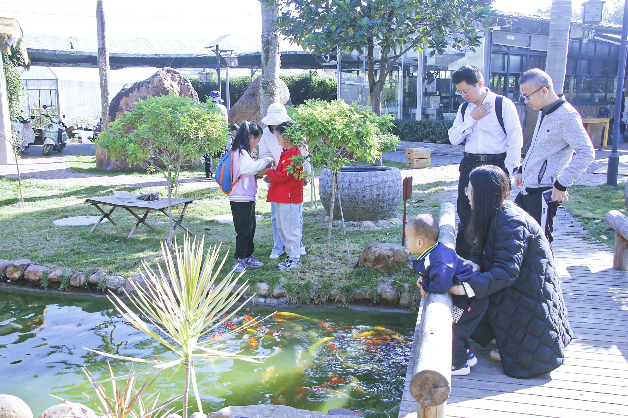 活动当天,教职工们全身心投入大自然的怀抱。大家或是结伴漫步于林间步道,在斑斓景致中感受大自然的诗意;或围坐一起分享日常工作趣事与生活感悟,阵阵欢声笑语回荡在农场上空,热闹而温馨。还有教师化身为“自然导师”,教同行的小朋友们认昆虫、识植物,并与小朋友们一起投喂锦鲤,既让孩子们近距离感受了大自然的魅力,也让教职工在亲子互动中收获了别样的快乐。
