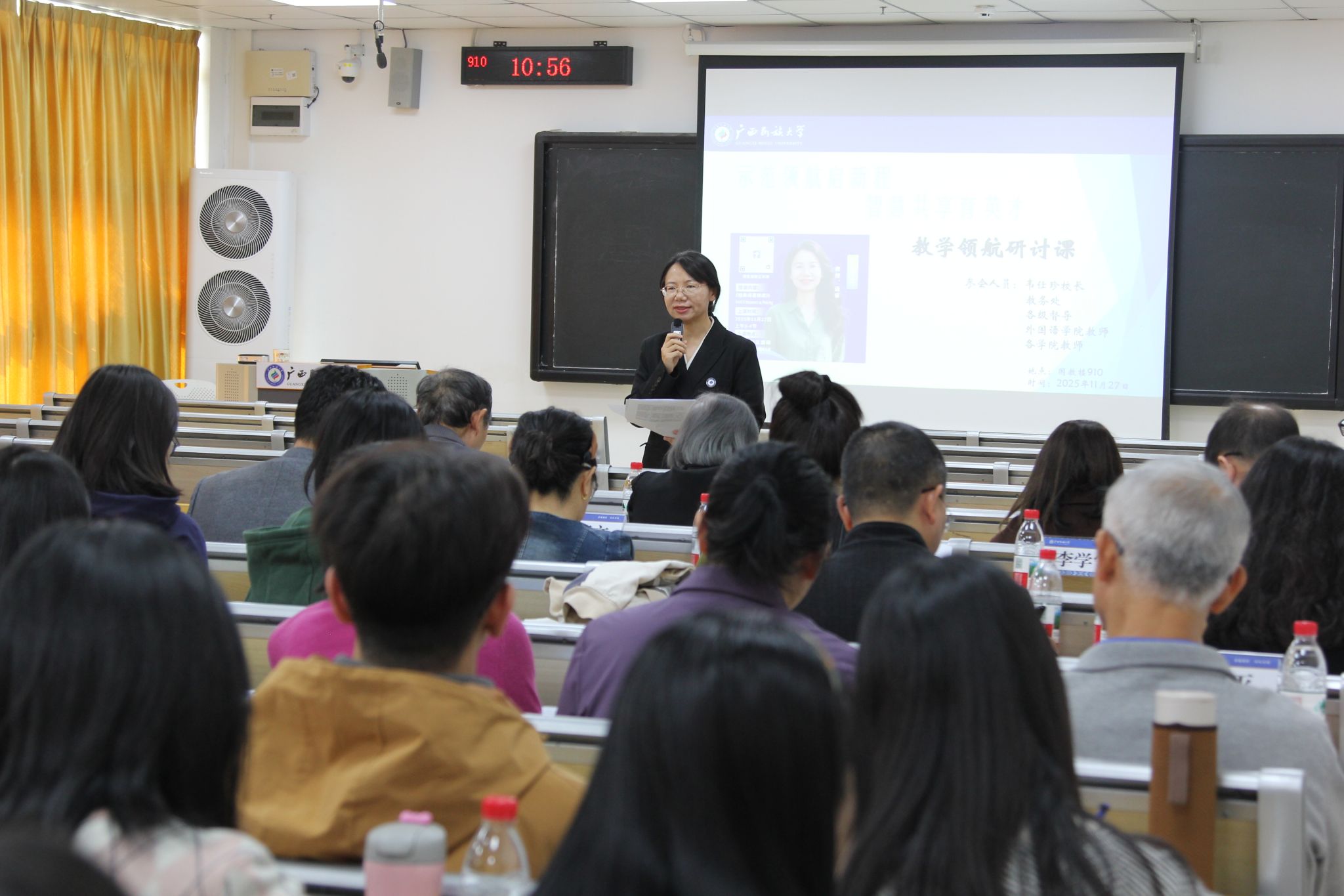 11月27日上午,广西民族大学“教学领航”活动第十九场在相思湖校区国际教育综合大楼910教室顺利举行。校长韦仕珍,学校党委办公室/校长办公室、教务处/教师教学发展中心负责人、学校教学督导、外国语学院领导及各学院教师代表到场观摩研讨。本场领航课由外国语学院院长刘雪芹教授主讲。