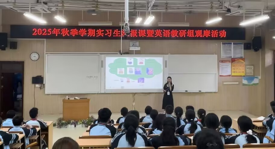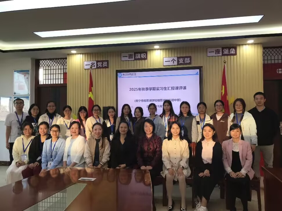 近日,我院2022级英语师范方向驻南宁市相思湖学校实习生,分七、八年级分阶段圆满完成教学公开课展示。此次活动旨在全面检验实习生课堂教学能力,展现其专业素养与阶段成长,得到相思湖学校领导、指导教师及我院的高度重视与大力支持。