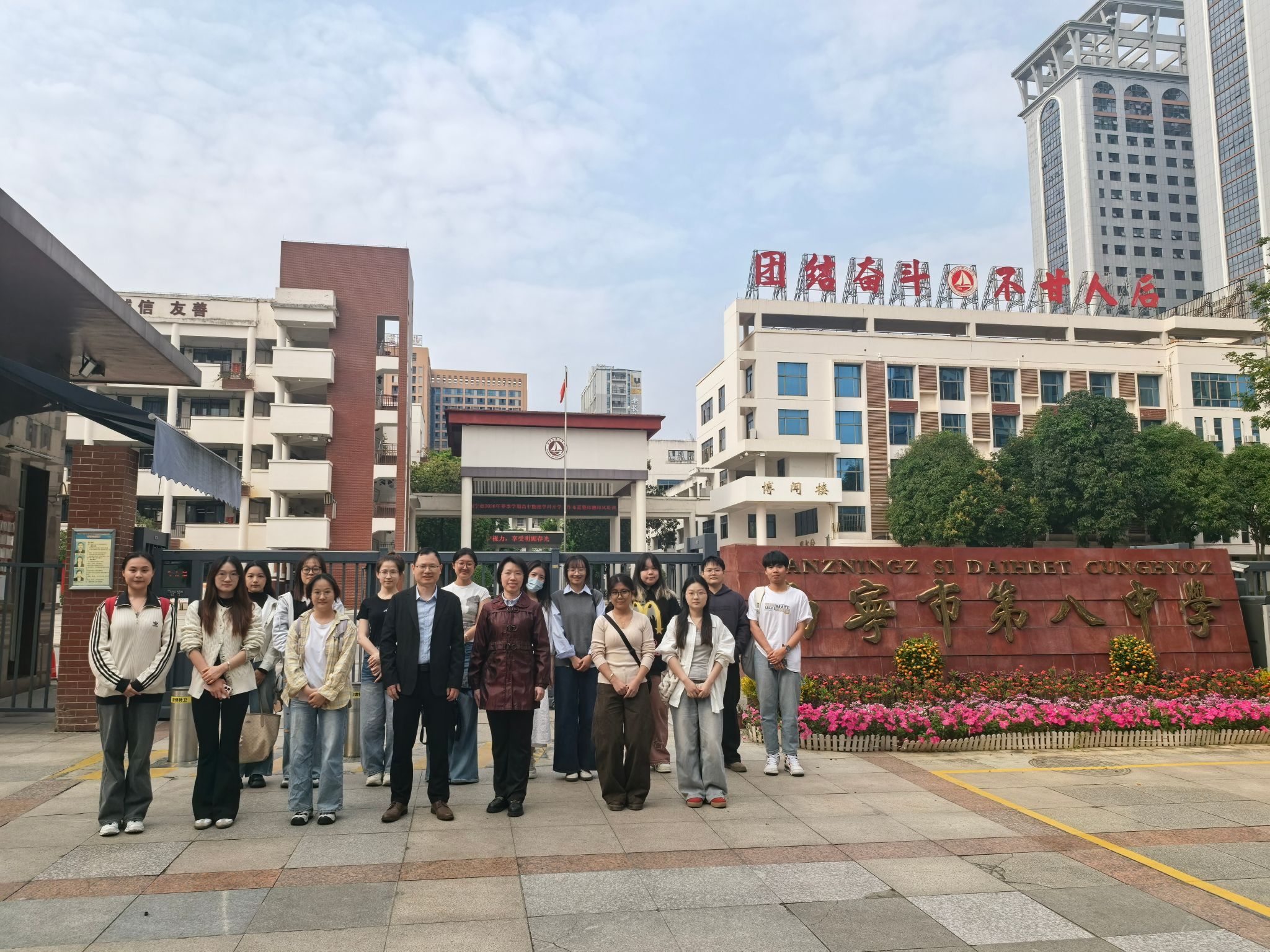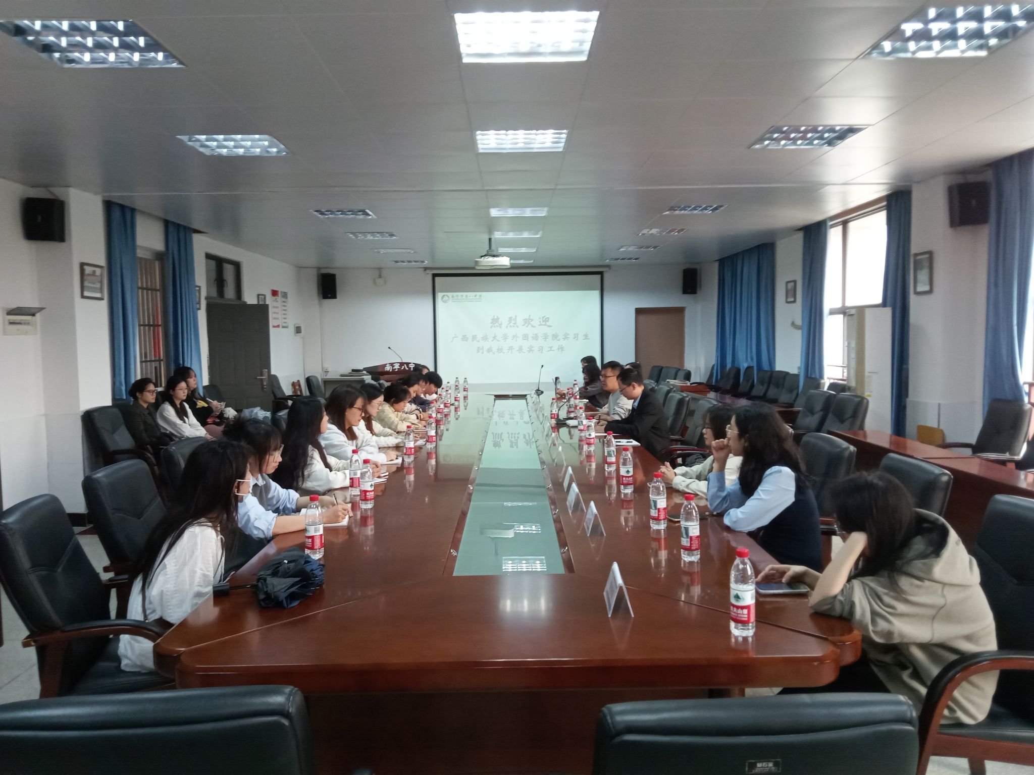 为扎实推进教育硕士实践教学工作,深化院校协同育人机制,近日,外国语学院副院长肖志兵、带队教师邓玉文带领2024级学科教学(英语)研究生,赴南宁市第八中学召开教育实习见面会。南宁八中校长黄伟强、校办主任陈希南及高二年级全体英语教师出席会议。
