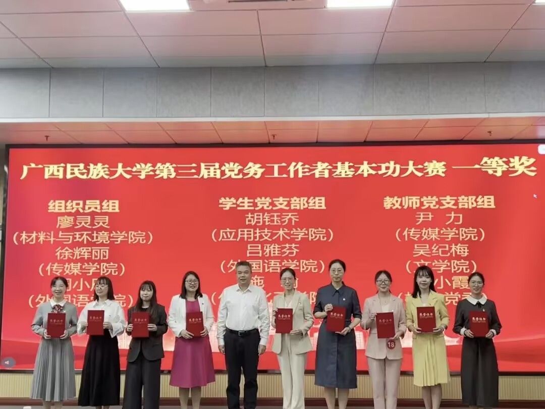 为深入学习贯彻《中国共产党普通高等学校基层组织工作条例》,推动落实基层党建“五基三化”巩固年行动,切实提升学校党务工作者履职能力和工作水平,2025年11月7日至8日,广西民族大学第三届党务工作者基本功大赛在相思湖校区顺利举行。我院行政离退联合党支部书记陈艳、本科生翻译系党支部书记吕雅芬、组织员周小雁参赛。