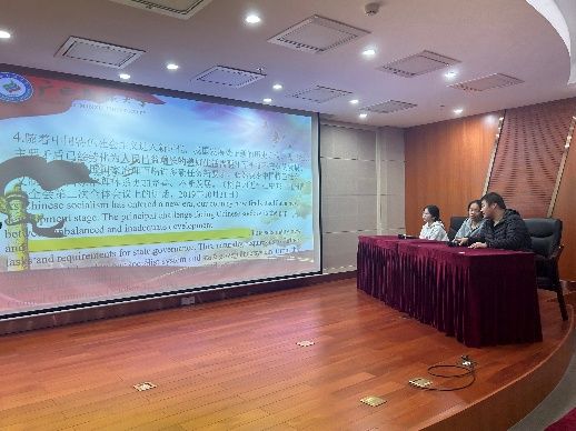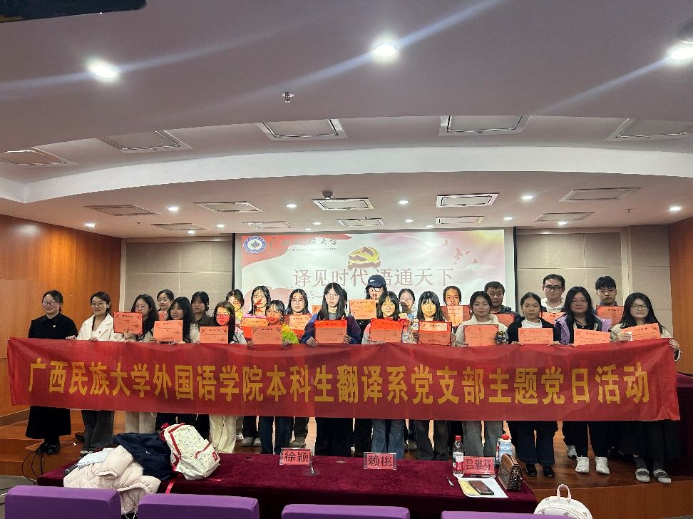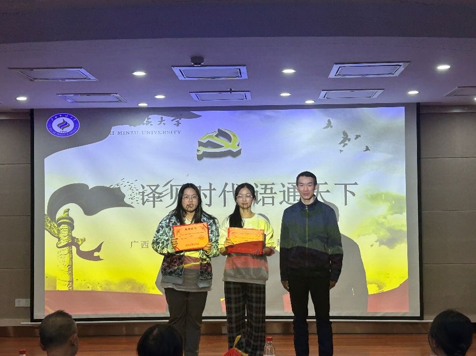 为深入贯彻习近平总书记“讲好中国故事,传播好中国声音”重要指示,推动党建与专业实践深度融合,近日,外国语学院本科生翻译系党支部成功举办“译见时代,语通天下”热词金句翻译大赛。学院翻译系徐颖、赖桃老师及大学英语部韦锦泽老师担任评委,党支部副书记梁竞铭主持赛事。
