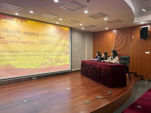 赛后,徐颖老师点评,肯定选手表现并鼓励大家在反复打磨中提升专业能力,以“Chinese mainland”的精准翻译为例,强调翻译需紧扣国情、贴合语境。随后,梁竞铭宣读获奖名单,评委们为获奖队伍颁奖。获奖选手表示,大赛既提升了专业能力,也深化了对党的创新理论的理解。