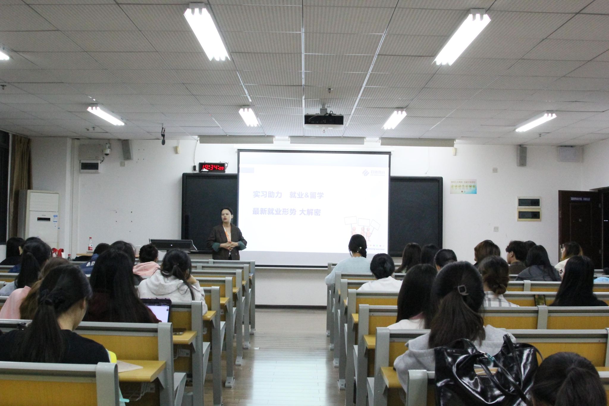 讲座中,主讲人以“数据解读+案例演示”的方式,剖析国内求职现状与留学就业趋势,结合市场供需和行业动态,梳理出清晰的成长路径,并就留学申请时间、文书准备、语言考试等实操问题答疑。她强调,留学规划要与职业发展紧密结合,关注院校、专业、实习三方面。