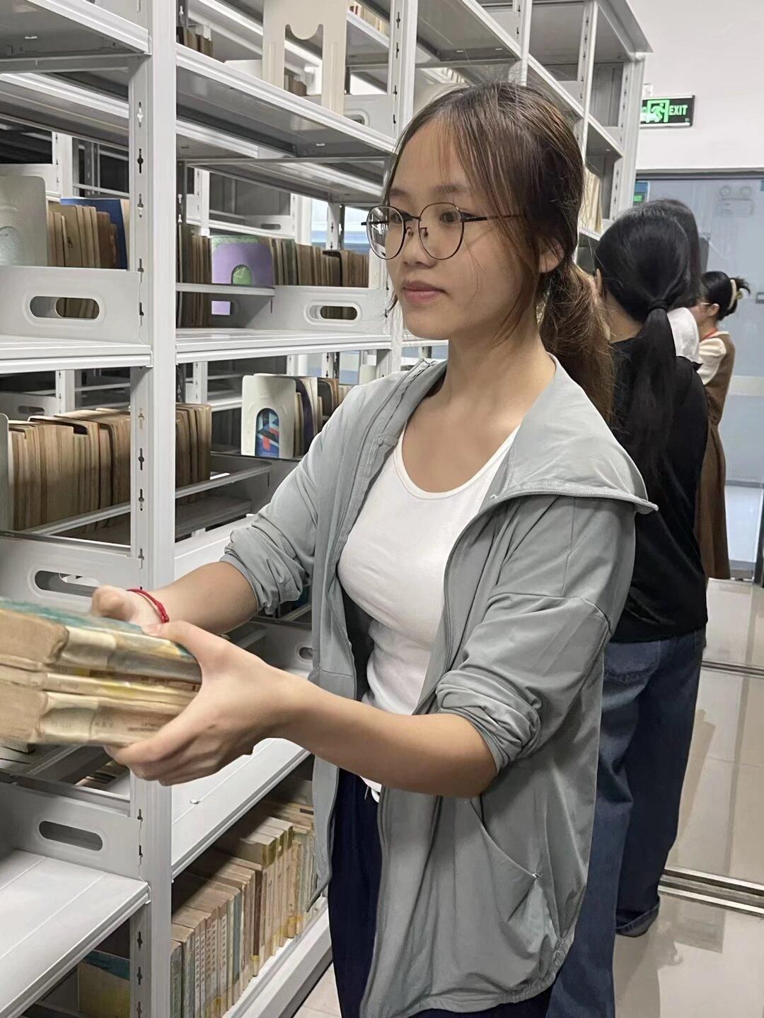 培训结束,同学们迅速投入劳动,分工明确、默契配合。一部分同学将书架图书逐本取出,按编号码放至周转区;一部分同学仔细核对索书号,确保“一书一位”;还有一部分同学主动搬运重书,避免折损。面对海量图书,大家耐心细致,不放过任何一处编号错位,即便手指发酸也专注认真。