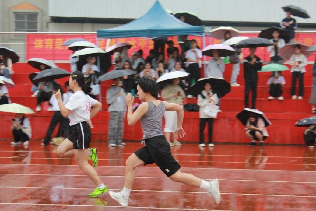 雨水虽凉,却浇不灭运动健儿们心中的热血;赛场虽滑,却挡不住他们前进的脚步。他们是赛场上最亮丽的风景线,用汗水与坚持,在这个雨天的运动会上,镌刻下属于青春的拼搏印记,让运动的风采永远闪耀在校园的记忆中。(初审:吕祖胜 复审:吕雅芬 终审:胡良人)