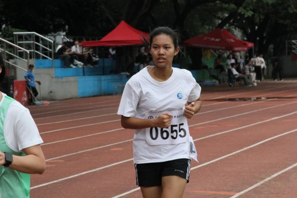 在长距离项目中,耐力与信念的比拼扣人心弦。女子800米赛道上,外国语学院的选手在发令枪响的瞬间如离弦之箭冲出,运动服很快被汗水浸透,紧贴后背却掩不住她每一步蹬地所爆发出的力量;汗水顺着发梢不断滴落,可她的目光始终锁定着前方终点线。冲线的瞬间,她赢得了第三名的好成绩,而比名次更滚烫的是她在跑道上的坚持,这无疑成为了团队精神的最佳诠释。