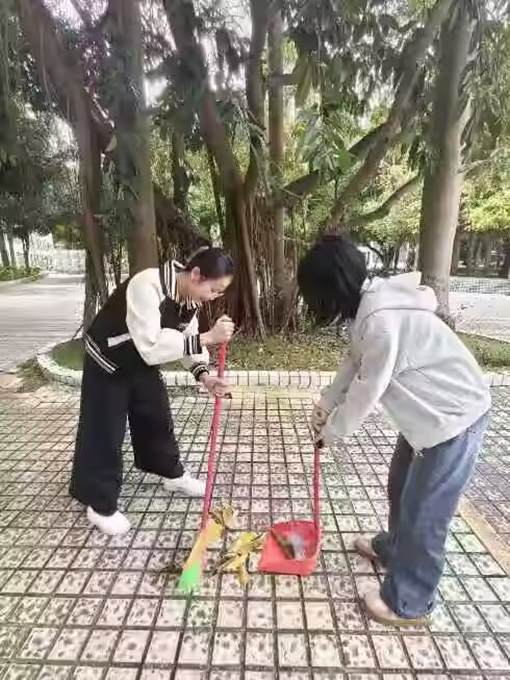 秋意渐浓,暖阳正好。为深入践行劳动教育精神,弘扬崇尚劳动、乐于奉献的优良风尚,共建整洁优美的校园环境,24 商英 1 班的 28 名同学在班委的精心组织下,于 11 月 10 日至 11 日期间,接连开展两场主题鲜明的义务劳动活动,分别走进国际教育综合楼楼前空地与五坡文化广场,用双手书写青春担当,用汗水为校园增添亮色。