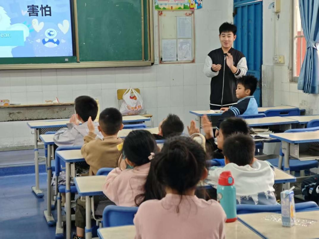 为破解英语学习枯燥感,志愿服务队创新设计“玩中学”教学模式:在“animal”主题课上,队员带领学生模仿动物叫声辅助单词记忆;“colors”主题课中,借助彩色气球道具开展“找颜色”拼读游戏。这种设计不仅激发了学生参与热情,更让队员们深刻体会到,外语专业价值在于以通俗方式让语言成为沟通工具,而非机械传递知识点。
