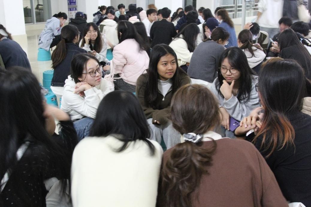 为进一步增强学生英语口语交流能力,丰富课余文化生活,外国语学院于12月18日晚在国际教育综合楼一楼大厅开展本学期第十期外语角活动。本次活动面向学校全体学生招募,共吸引137名学生参与,留学生莫舞钦担任本期活动的指导老师。