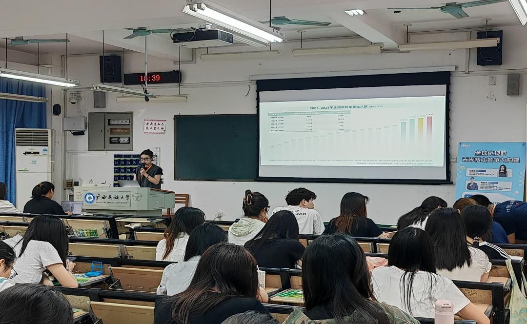 为帮助学生明晰考研与留学方向,近日,我院在学友楼208教室顺利开展2025-2026学年第4期就业解忧沙龙活动。本次活动以考研备考规划与留学申请指导为主题,邀请南宁新东方教育培训学校两位资深教师担任主讲人,大三大四部分同学参加。